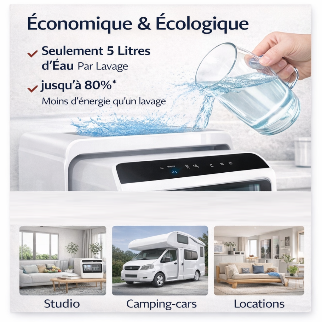 Compact et pratique, il est parfaitement adapté aux studios, appartements, camping-cars et locations. Une solution intelligente pour profiter du confort d’un lave-vaisselle là où l’espace est limité.